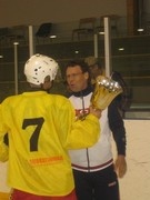 Joensuun Kotikartano Oy:n lahjoittaman kiertopalkinnon luovutti Sotkamon kapteenille lahjoittajan edustaja Jarmo Hytti (U-K:n pressa 2005-2006)