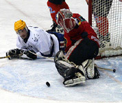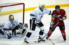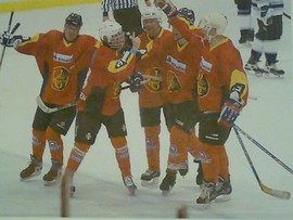 The final game was very exciting. Again ending in a 2-2 tie. Rob scored early in the first to put the Wolves up by one and we contained #15 throughout the game. After running into, and getting out of penalty trouble mid-way through the final period, we had a 3 minute letdown and ended up down 2-1 with 2 minutes left to play. With under a minute left in the game Seed was pulled for an extra attacker and Mike Boston joined HTL, Paul, Jack, Billy and Rob as they held the puck deep in the Finns zone. With only 36 seconds left Boston scored with HTL and Jack drawing assists and we were headed for a 5 minute overtime. No goals scored in OT. Some big saves on both ends of the ice. We then proceeded to the shootout. 5 shooters each. Rob went first for the Wolves and scored. Jack followed with the same result. Down our end of the ice Seed stoned #15 on their first shot and stopped the second shooter as well. Although HTL scored what proved to be the tournament winning goal on the Wolves next shot, The Finn's Kari Makinen scored as well, as did their fourth shooter, Petri Italia. With Larry missing the Wolves fourth shot, th Wolves were up 3-2 with one shooter remaining for each squad. Boston failed to convert for the Wolves but Seed came up HUGE..... AGAIN. Wolves win both the shootout and the game 3-2. Rob, Jack and HTL all converting in the shootout for the Wolves. Seed's performance earned him the game MVP.