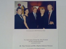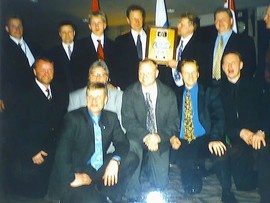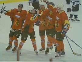 Game 2 vs Kontiolahden Kajastus from Finland. A good team, a big team and a great game. Beantown opened the scoring 4 minutes in but at the end of the first we were down 2-1 as Finland's #15, Timo Turunen, scored a goal and assisted on the second. Easily their best player he was the game MVP and we knew we'd have to pay closer attention to him. The rest of the game was pretty close with the Wolves finally tying the score with HTL converting a great passing combo from Billy and Paul. Game ended in a 2-2 tie and again the Seed played great. Only for hockey, not drinking. The Finns beat Quesnel 5-2 and tied for first place with us. We gained the top spot based on goal differential, securing our spot in the championship game. The Finns would have a rematch with Quesnel to see who would earn the second birth in the final. Similar to their first meeting, the BC boys went up by 2 goals but couldn't hold on and lost again, this time by the score of 5-3. Again #15 for the Finns was dominant.